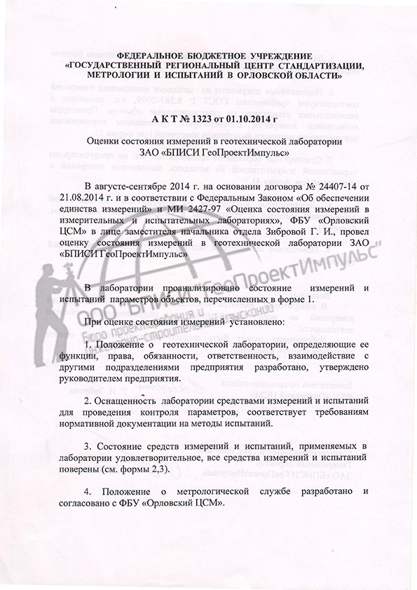 Геотехническая лаборатория ООО «БПИСИ» ГеоПроектИмпульс»